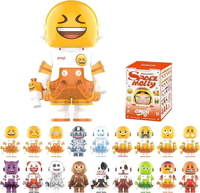 POP MART, MEGA Espacio Molly 100% × Emoji de la Serie, Molly Caja de la Persiana Figuras, Diseño Aleatorio de las Figuras de Acción Juguetes Coleccionables de Decoraciones para el Hogar, Vacaciones, Regalos de Cumpleaños para Niños y Niñas, de un Solo Cuadro